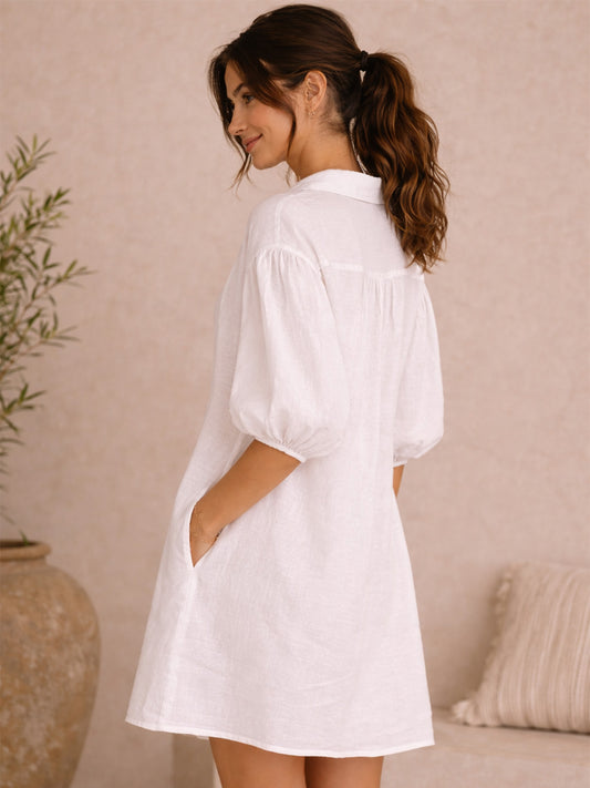 Linen Blend White Dress