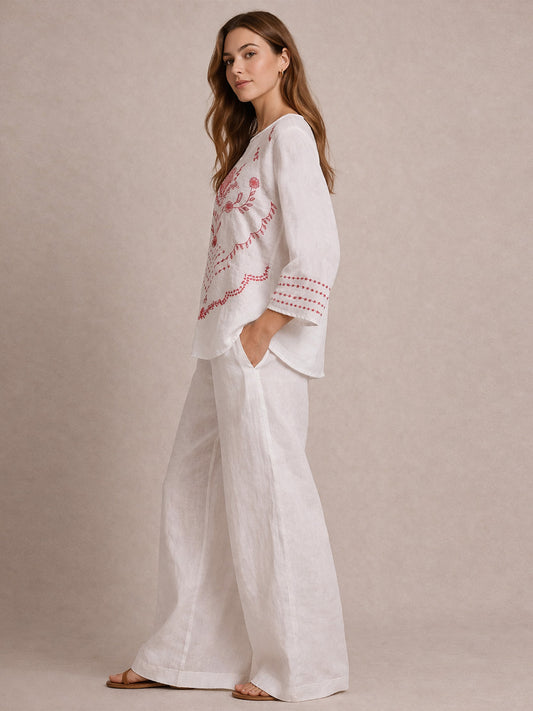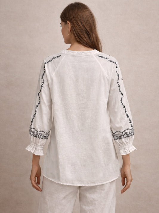 Embroidered White Cotton Top