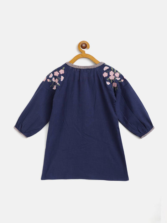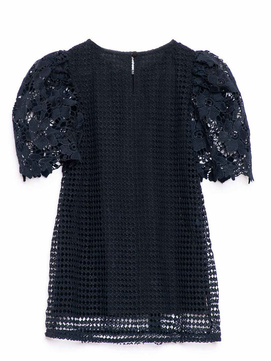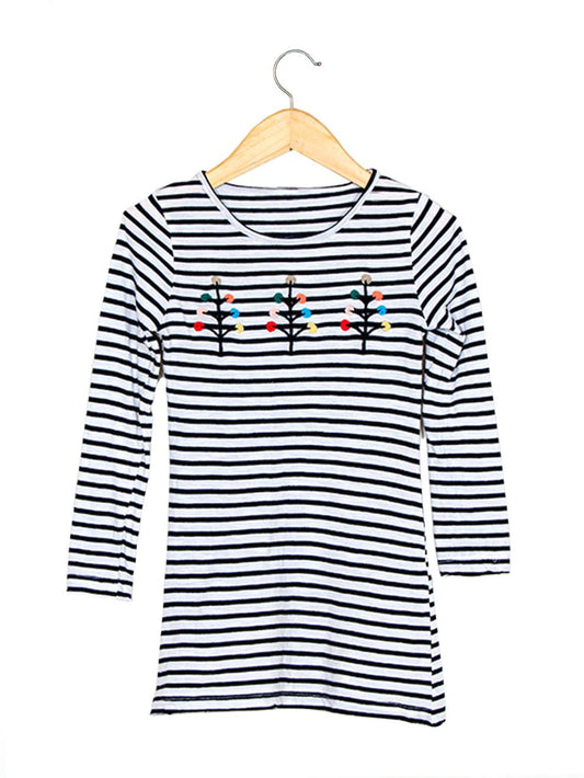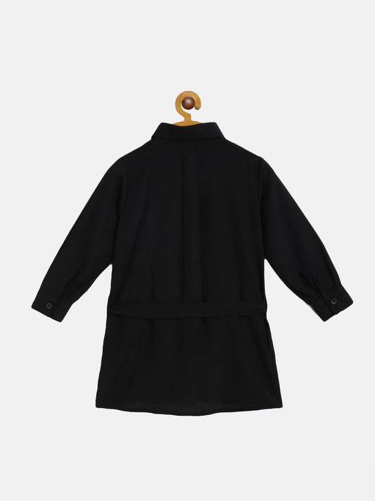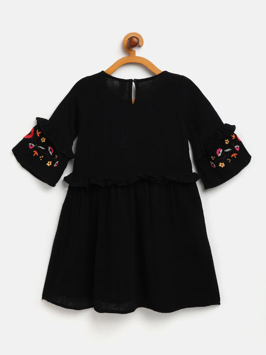 Black Embroidered Cotton Dress with Flarred Sleeves