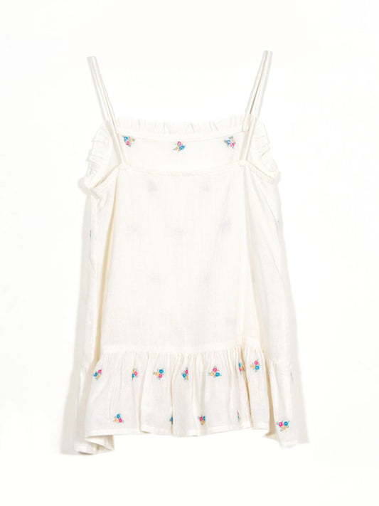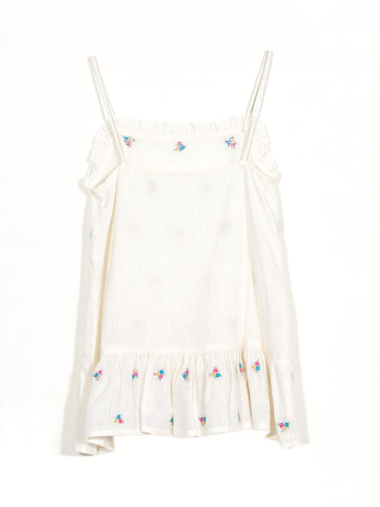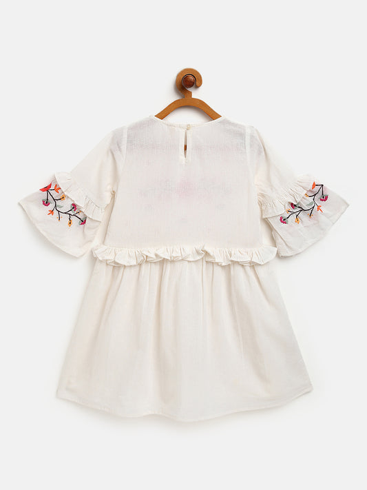Cream Embroidered Cotton Dress with Flarred Sleeves