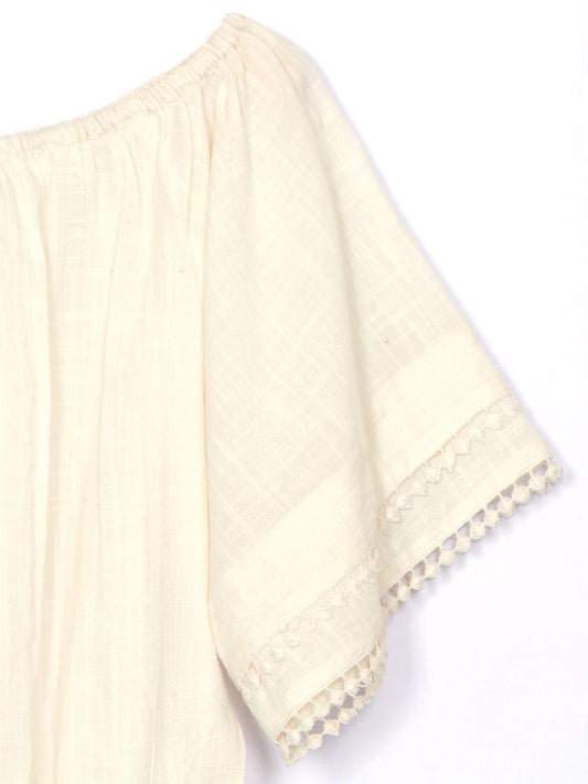 Cotton Gauze Off-Shoulder Top with lace detail