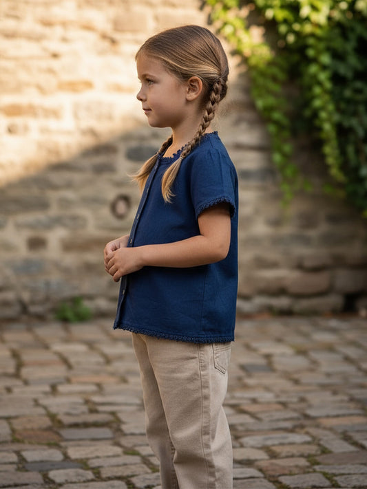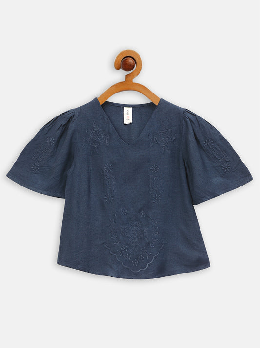 Cotton Chambray Embroidered Top