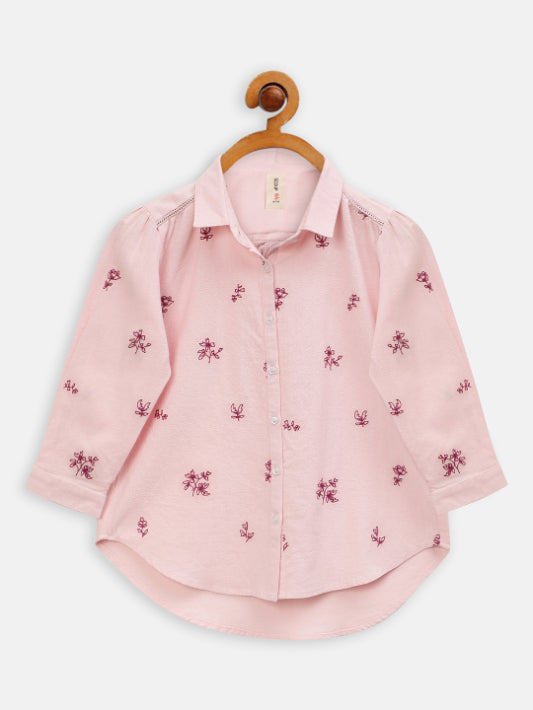 Mauve embroidered cotton shirt