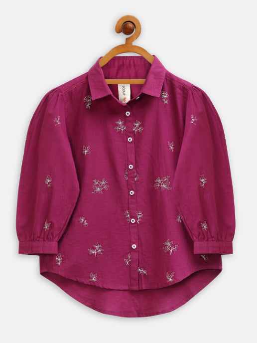 Burgundy embroidered cotton shirt