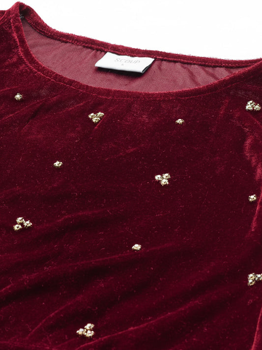Dark Red Embellished Velvet Dress