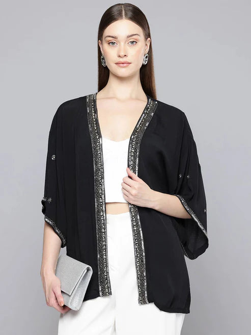 Combo of Tie-Up Shrug and Orange Embroidered Top