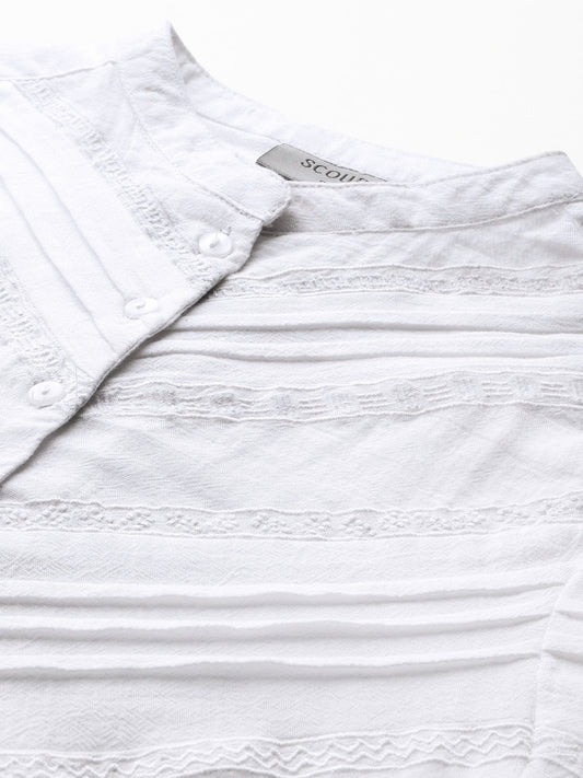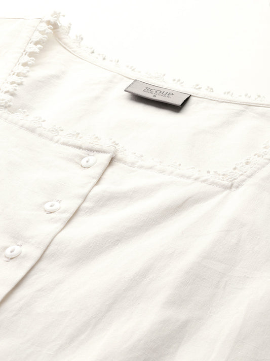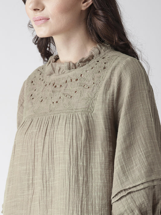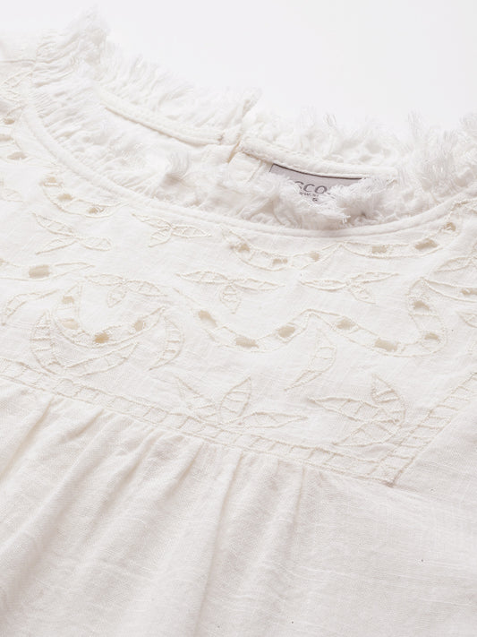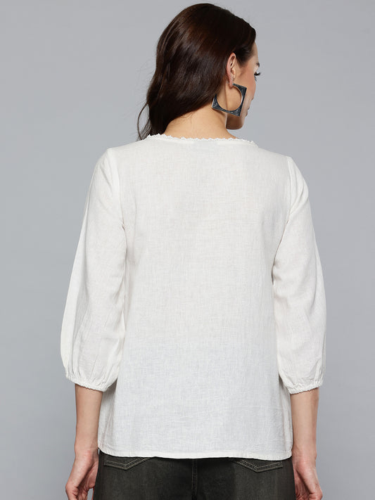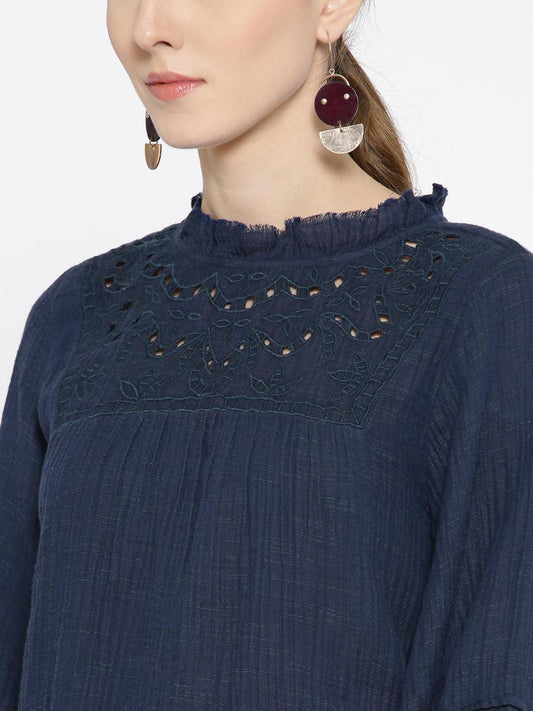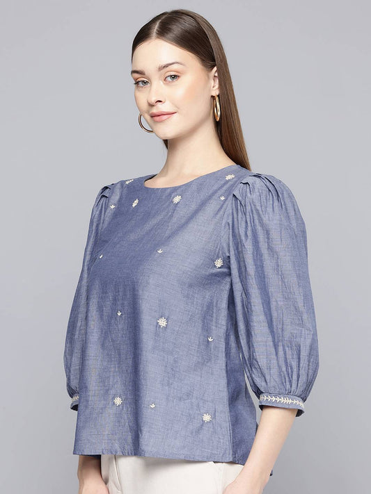 Women Blue & Orange Floral Embroidered Pure Cotton Top