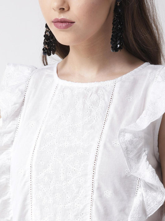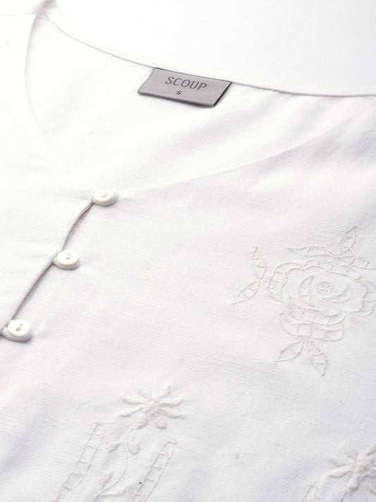 White Embroidered A-Line Pure Cotton Top