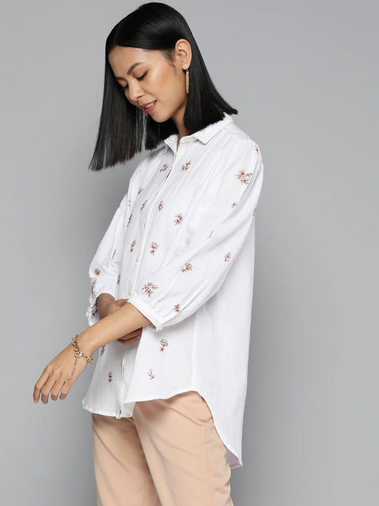 White Regular Fit Embroidered Casual Shirt