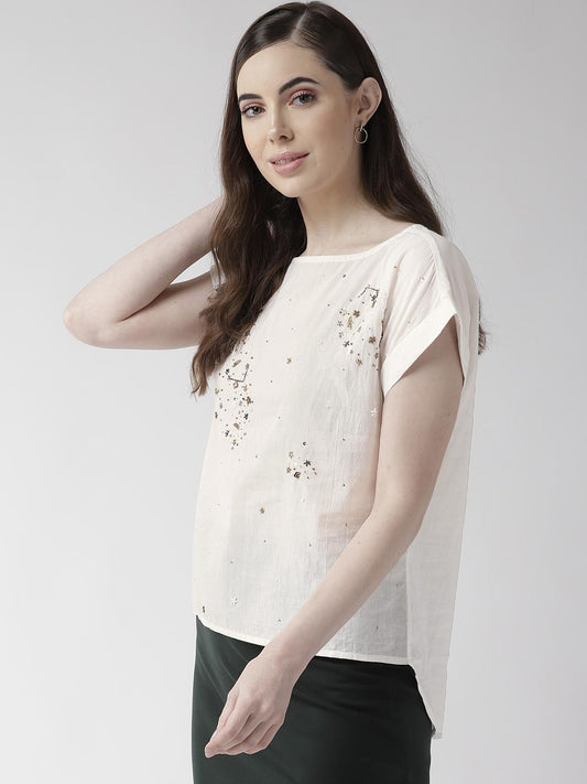 Off-White Cotton Embellishment Top