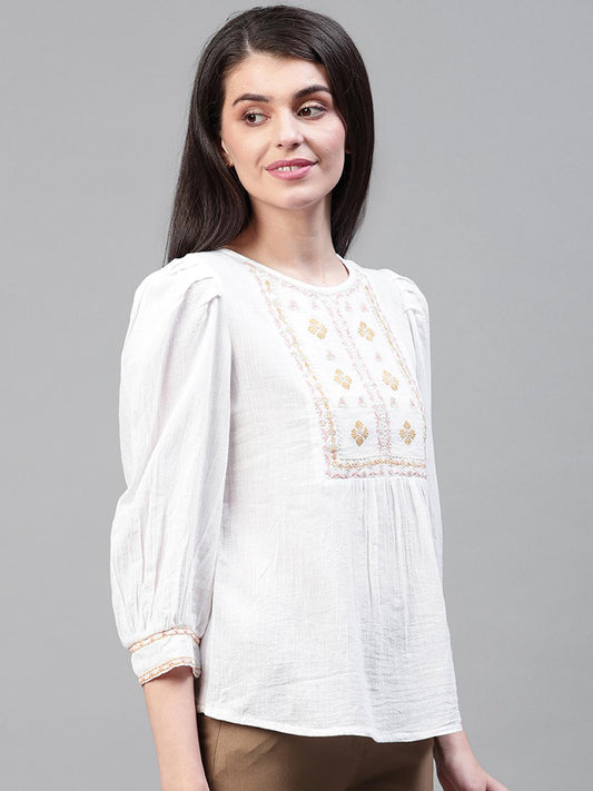 White Yoke Embroidered Top