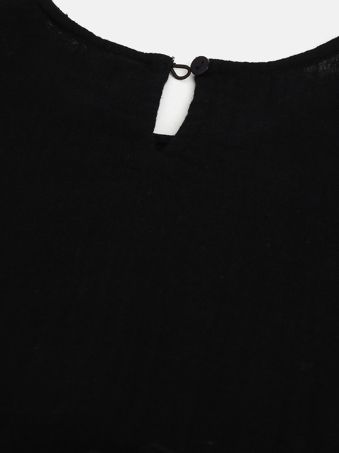 Black Embroidered Cotton Dress with Flarred Sleeves
