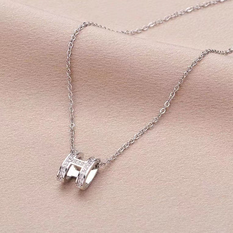 This elegant silver color necklace features a sparkling 'H' initial pendant adorned with crystals, offering a personalized and chic touch to any look. Perfect for everyday wear or as a thoughtful gift.