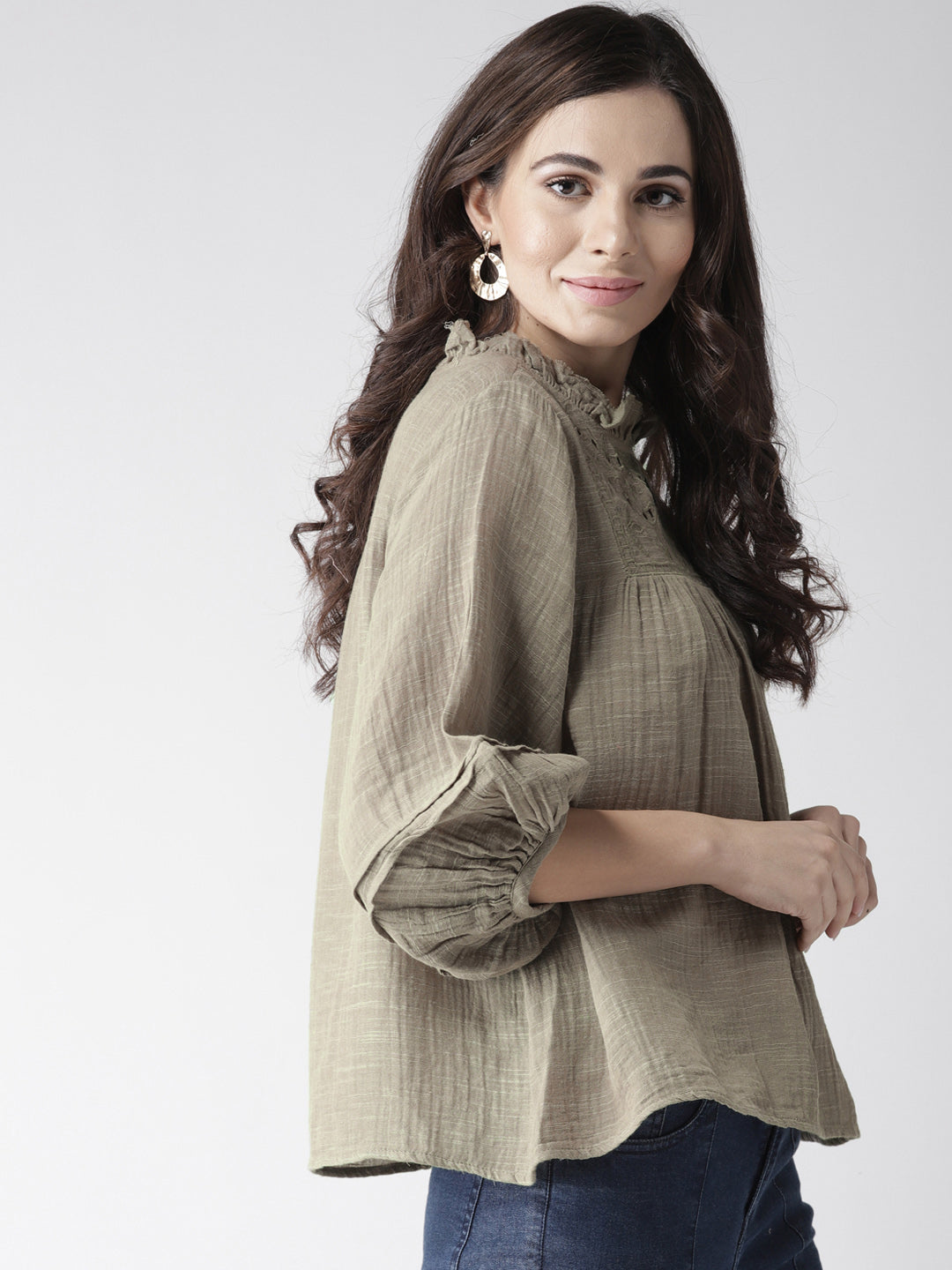 Olive Green Solid A-Line Pure Cotton Top